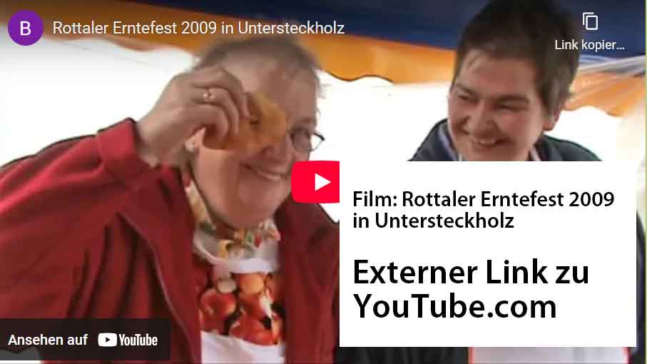 Ein Spaziergang durch das Rottaler Erntefest in 10 Minuten. Dieser Film hat für die Region historischen Charakter und macht uns die Änderungen und Erfolge der letzten Jahre bewusst. Die Gleise des Nostalgiezuges existieren zwar nicht mehr, doch anstelle der ehemaligen Bahnverbindung zwischen Melchnau und Roggwil verbindet hoffentlich schon bald die Fuss- und Veloverkehrsroute Rottaler BahnTrail die beiden Orte. Die Gemeinden Untersteckholz und Langenthal haben inzwischen fusioniert und verschiedenste Produzentinnen und Hersteller regionaler Spezialitäten kooperieren unterdessen erfolgreich: Beispielsweise die Klostermetzgerei St. Urban mit dem Gewürzkräuterspezialisten vom Isehuet (Kräuter-Rohschinken) oder die Roggwiler Confiserie Zulauf mit der Brennerei Stadelmann (preisgekrönte Rottaler Kirschmöckli). Die Rottaler Kulturlandschaft (BE, LU, AG) ist vernetzt, nicht zuletzt durch das Rottaler Erntefest.